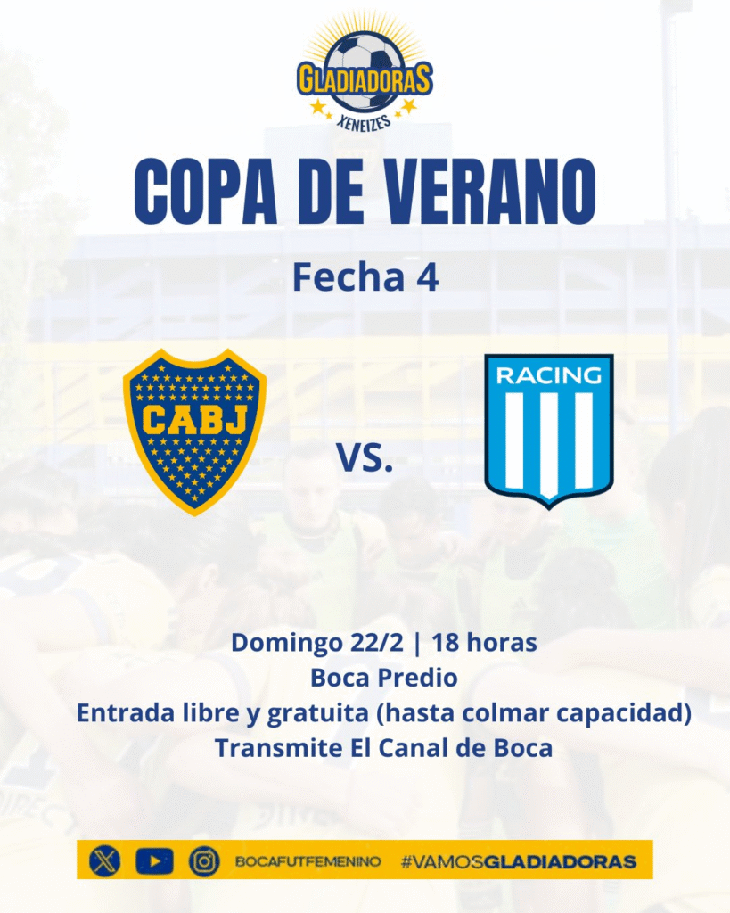 Por la fecha 4, el equipo de Florencia Quiñones recibirá a Racing Club de Avellaneda. El encuentro será este domingo 22 a las 18 horas en Boca Predio, con transmisión en El Canal de Boca.