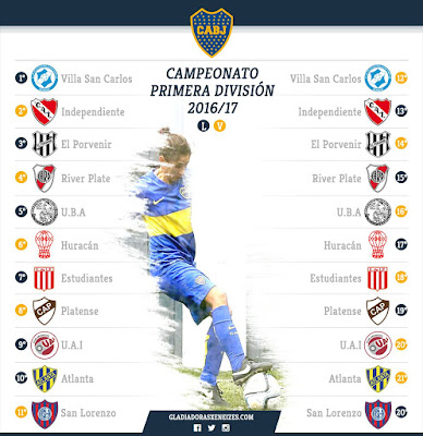 Boca Juniors participa de la Primera A y los partidos que figuran en la placa son los que le tocará disputar. El Torneo se juega tal cual el anterior, con una ronda de ida y otra ronda de vuelta.