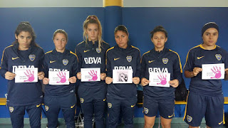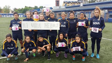 Las jugadoras del equipo de fútbol femenino del Club Atlético Boca Juniors no se quedan al margen del reclamo por #NiUnaMenos, la consiga para la lucha contra la violencia de género.