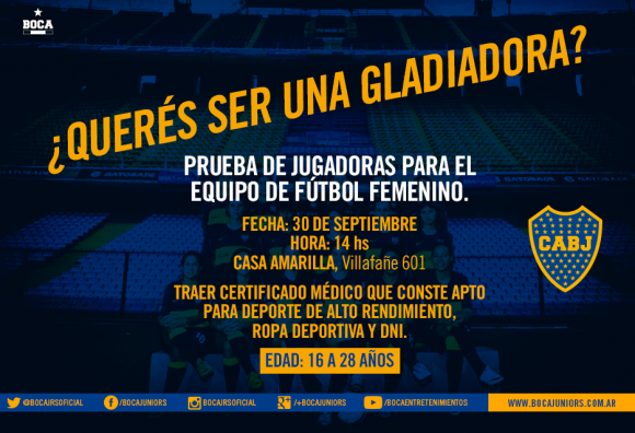 La prueba se realizará en el complejo Pedro Pompilio (ex Casa Amarilla) a las 14 horas. Las candidatas a integrar el primer equipo xeneize deberán tener entre 16 y 28 años y deberán presentarse con su DNI y con un certificado médico que indique que están aptas para realizar deportes de alto rendimiento. También deberán traer su propia ropa deportiva neutral.